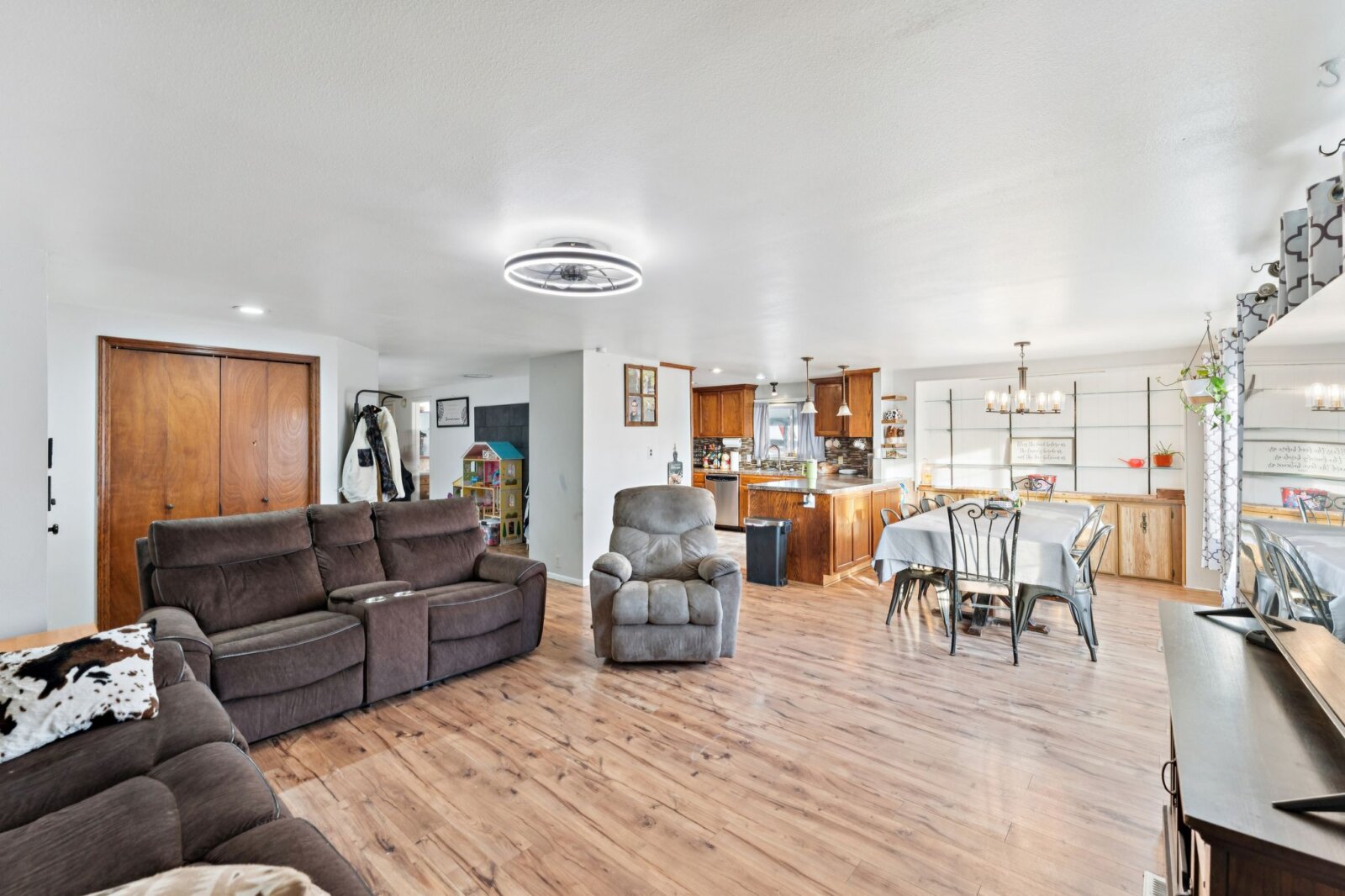 Open living and dining area that flows into the kitchen