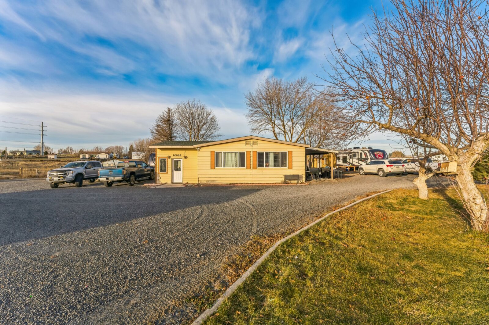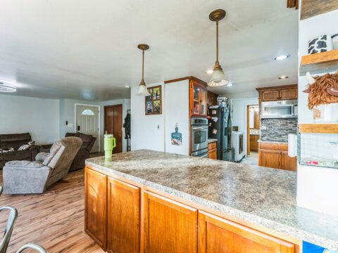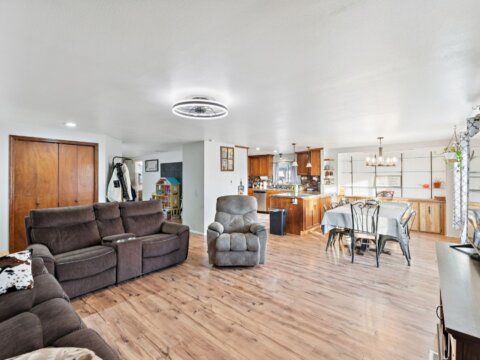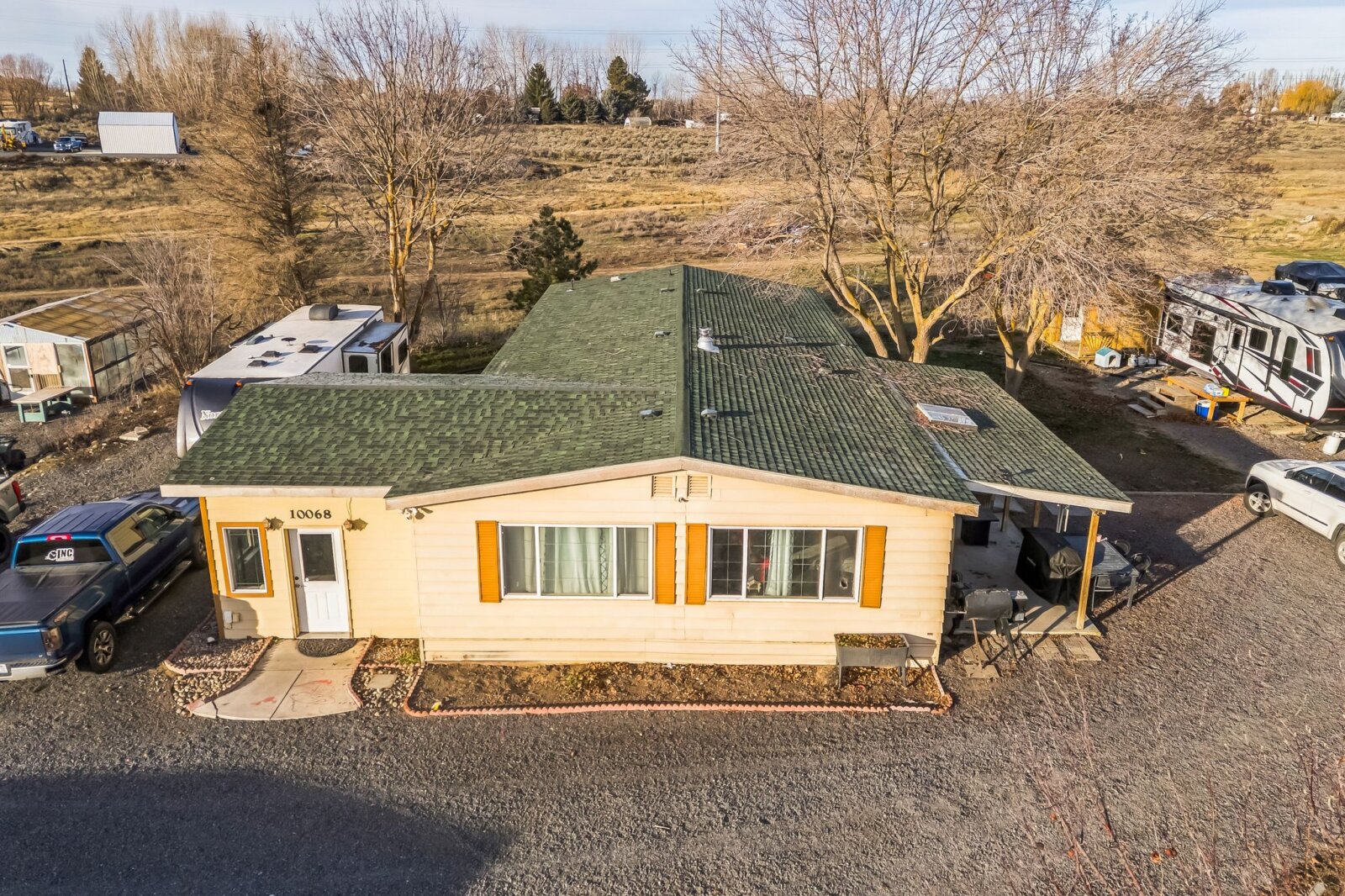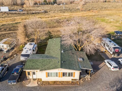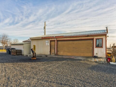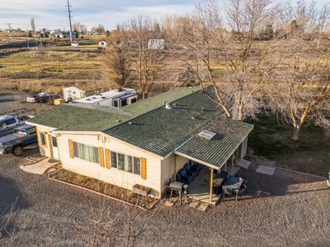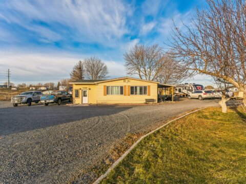 Discover 5 flat, nearly fully fenced acres ready to make your own, complete with a gated entrance at the start of the driveway and so much more! This beautiful country property features a spacious home with a detached shop ideal for projects and hobbies, a greenhouse, abundant parking, fruit trees, and stunning territorial views. Inside, you’ll find an inviting open living and dining area that flows seamlessly into the kitchen, plus an additional flex room perfect for extra storage or customization. The land has irrigation rights, brand new septic in 2023, and two RV hookups—fully connected to septic and well—ready for guests or your own getaway needs. The manufactured home has been twice moved. Once from manufacturer to property and once on the property.