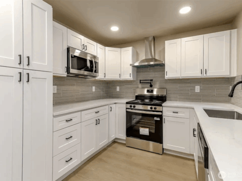 Upgraded sleek kitchen with quartz countertops