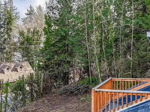 Add finished landscaping + deck in front yard for water view